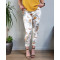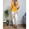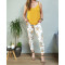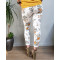 Pantalon blanc fleurs et papillons oranges et grises taille haute