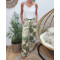 Pantalon femme fluide beige vert et parme Enrica