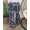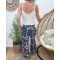 Pantalon femme fluide écru motifs bleu marine Bettina