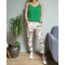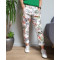 Pantalon fluide blanc feuillages et fleurs exotiques multicolores