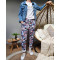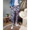 Pantalon fluide fleuri tête de mort -Bleu