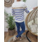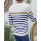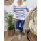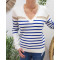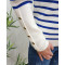 Pull femme marinière col V blanche rayures bleu roi et dorées