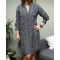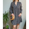 Robe chemise marine petites fleurs blanches et rouges