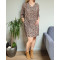 Robe droite noire fleurie liberty camel rouge bleu et étoiles dorées