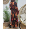 Robe femme longue noire liseré doré motif rose rouge et beige Abriana