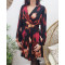 Robe femme noire liseré doré motif rose rouge et beige Abriana