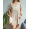 Robe fluide blanche fleurs roses feuillages verts et dorés