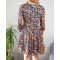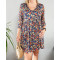 Robe fluide marine fleurs liberty brique jaunes vertes blanches manches 3/4