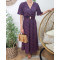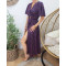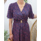 Robe longue femme fleurie marine et rouge manches volantes Serena