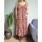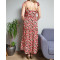 Robe longue noire grosses fleurs rouges jaunes et vertes bretelles nouées