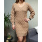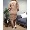 Robe pull beige liseré doré maille tressée ajourée et dos lacet