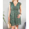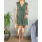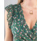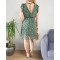 Robe verte manches volantes à fleurs roses bleues blanches losanges dorés