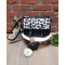 Sac à bandoulière besace noire rabat imprimé blanc marron à clous