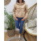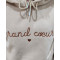 Sweat femme camel broderie Grand cœur