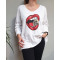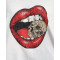 T-Shirt oversize blanc bouche rouge crâne à strass