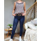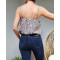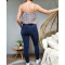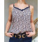 Top à bretelles fleurs roses kaki et marines col broderies