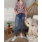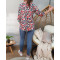 Tunique blanche bouquet de fleurs rouges parmes beiges