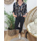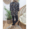 Tunique femme noire plumes camel et blanches