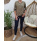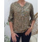 Tunique kaki imprimé floral blanc, marron, jaune et bleu