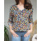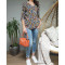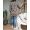 Tunique marine champ de fleurs jaunes mauves oranges et blanches