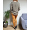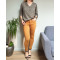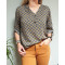 Tunique noire motifs éventails fleuris blancs et moutardes