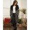 Veste longue noire à rayures blanches poches plaquées